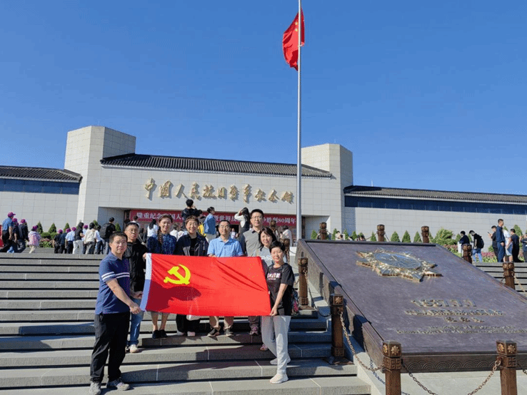 在纪念馆前,党员们整齐列队,怀着对这段历史的敬畏与对革命先辈的崇高敬意走进纪念馆。馆内丰富的历史文物、珍贵的历史照片以及逼真的复原场景,仿佛将党员们带回到了那个烽火连天的年代。从“九一八”事变到全面抗战爆发,从淞沪会战到百团大战,每一个历史节点都在诉说着中国人民不屈不挠的抗争精神。党员们认真聆听讲解员的介绍,不时驻足凝视,仔细阅读展板上的文字说明。党支部书记陶玉也为大家进行了深入讲解,引发热烈讨论。