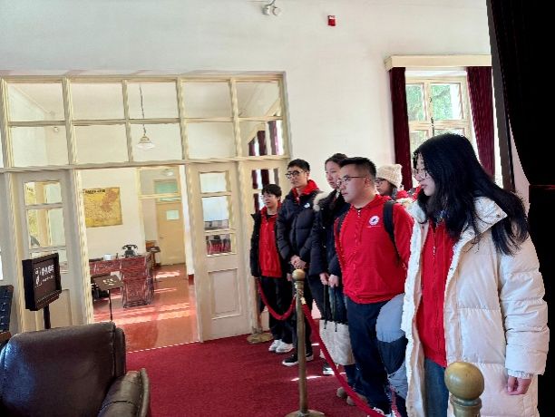 在讲解员的引导下,师生们缓步于简朴的会客室、办公室与居室之间,凝视着珍贵的历史照片与朴素的实物陈列——从书桌上的煤油灯到厚重的理论书籍,每一件展品都无声诉说着开国前夕那段风云激荡的岁月。同学们驻足聆听,细致记录,深刻感受着老一辈革命家艰苦奋斗的作风、一心为民的情怀与胸怀天下的担当。通过身临其境的参观,一段段鲜活的历史从书本走进现实,全体学员上了一堂生动而深刻的党史教育课,进一步筑牢了理想信念的根基。
