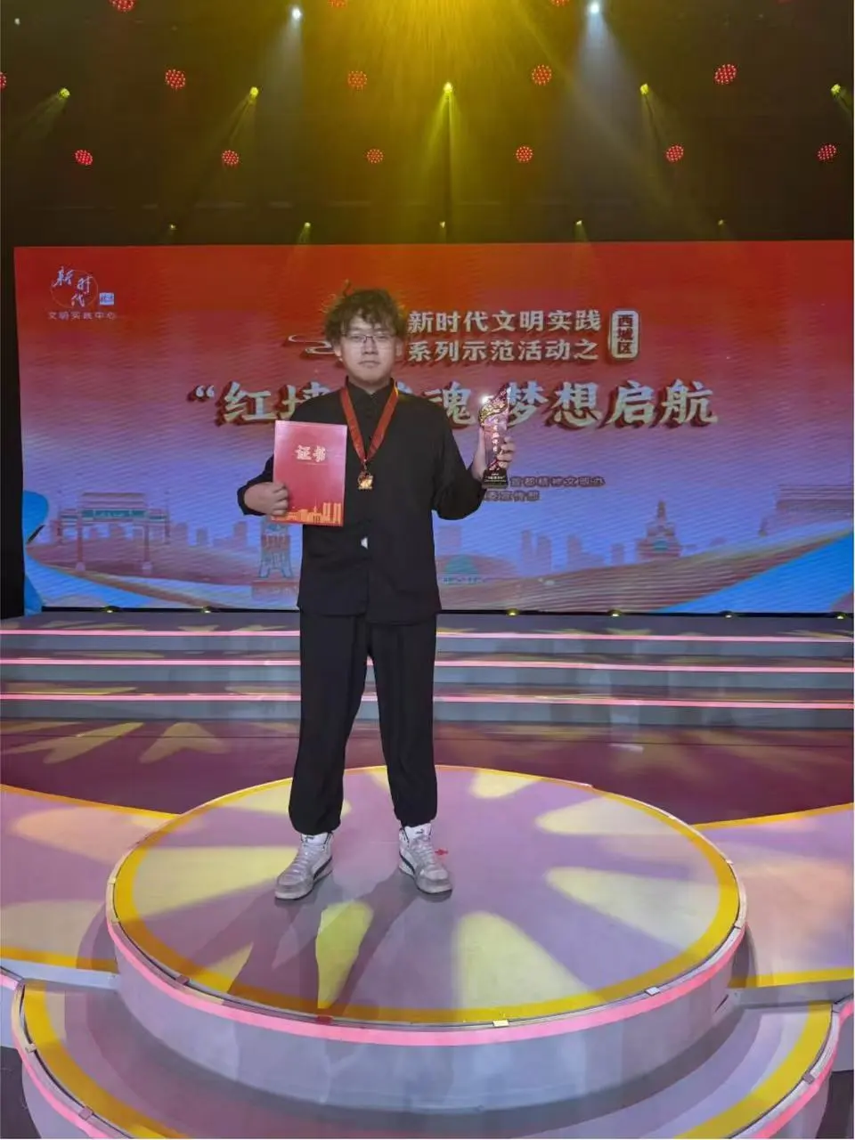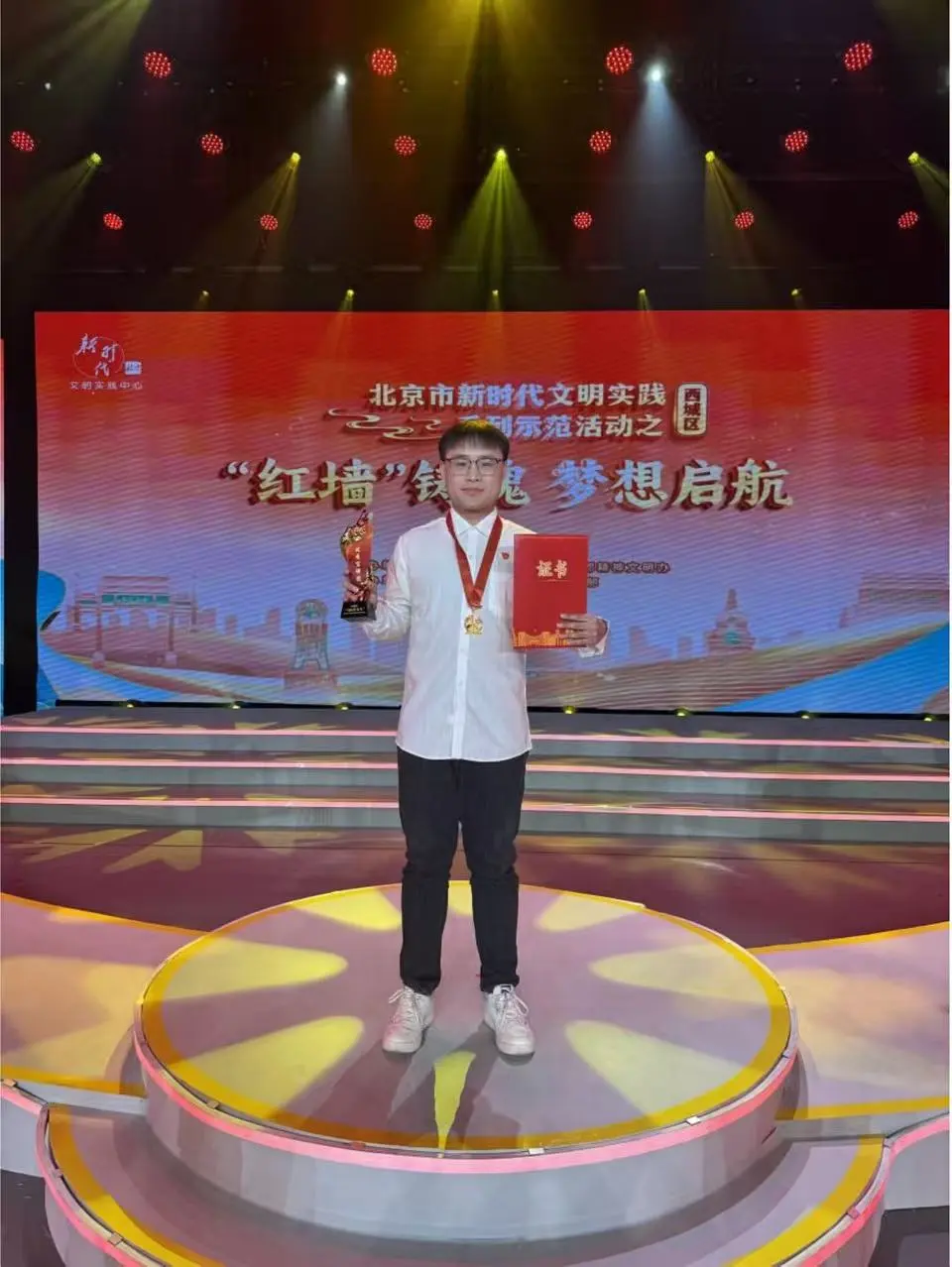 12月19日,在北京市西城区的“‘红墙’铸魂 梦想启航”主题活动上,我院指导的学生社团——william威廉中文官网“励行”研习社(研究生理论宣讲团)——获评西城区“马院进社区”新时代文明实践理论宣讲活动“优秀宣讲团”,宣讲团成员、我院2025级博士研究生翟成鹏和2024级硕士研究生泽仁朗佳获评“优秀宣讲员”。