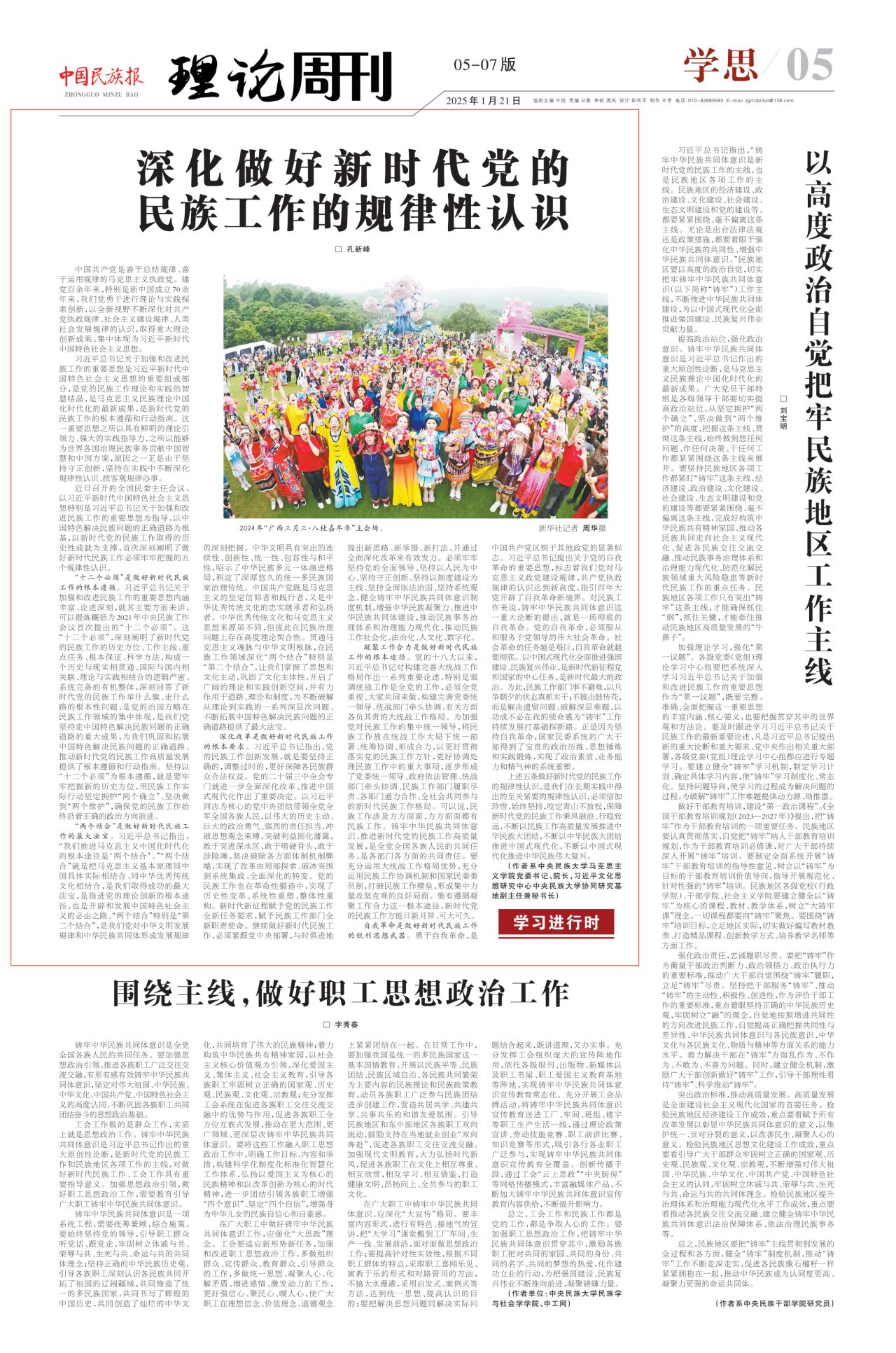 近日召开的全国民委主任会议以习近平新时代中国特色社会主义思想特别是关于加强和改进民族工作的重要思想为指导,以中国特色解决民族问题的正确道路为根基,以新时代党的民族工作取得的历史性成就为支撑,首次深刻阐明了做好新时代民族工作必须牢牢把握的五个规律性认识。