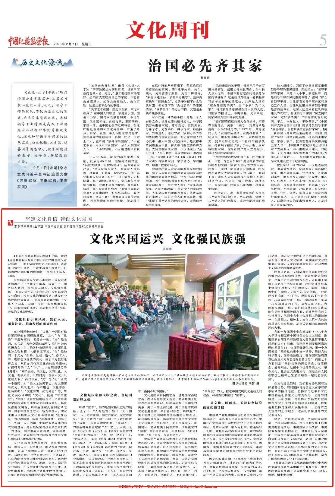 仔细阅读首段文意不难发现:该段论述要旨落在了“文化关乎国本、国运”上,即次句所言的“文化兴国运兴,文化强民族强”,也即习近平总书记指出的“没有高度的文化自信,没有文化的繁荣兴盛,就没有中华民族伟大复兴”。通观全章则可看出,“文化关乎国本、国运”作为一条红线贯穿其中。这条红线的实质,正是牢牢坚持中国共产党的文化领导权。