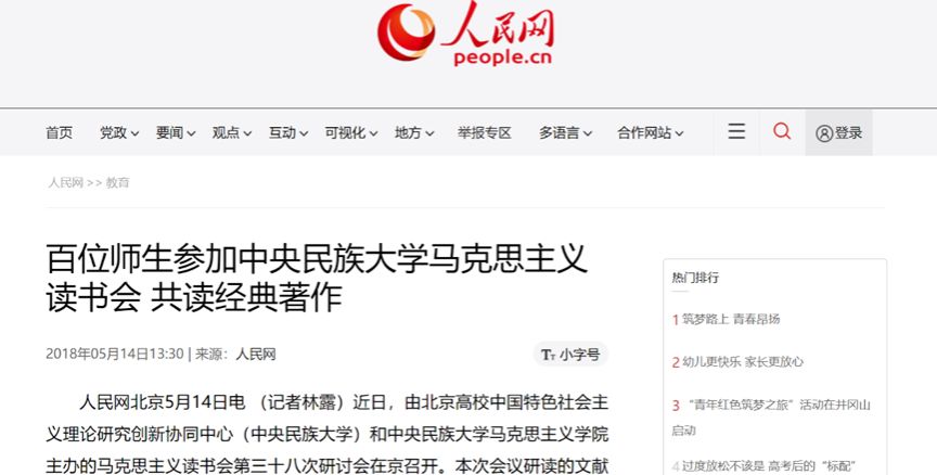 人民网对马克思主义经典读书会的报道