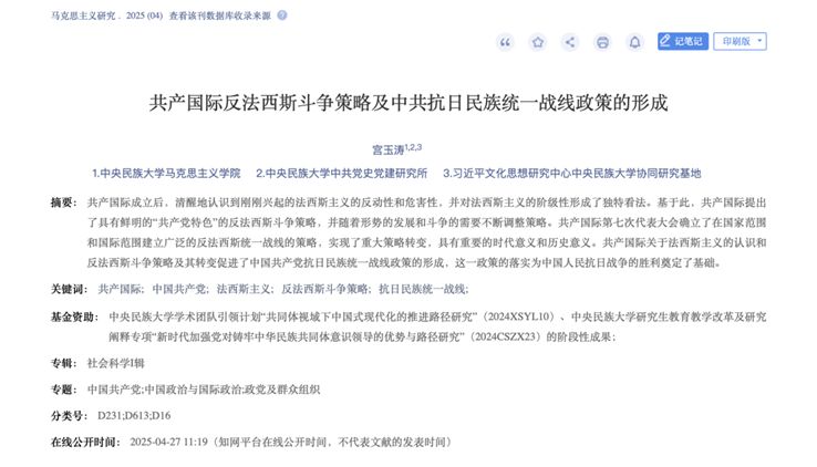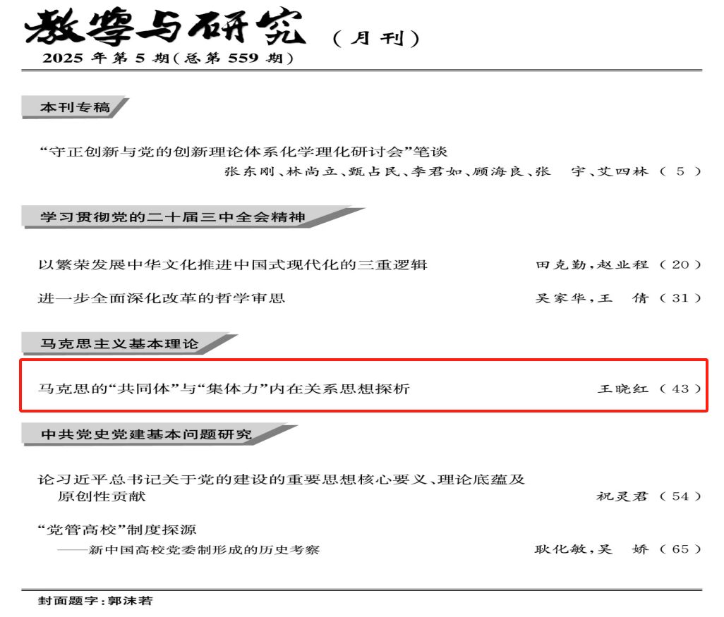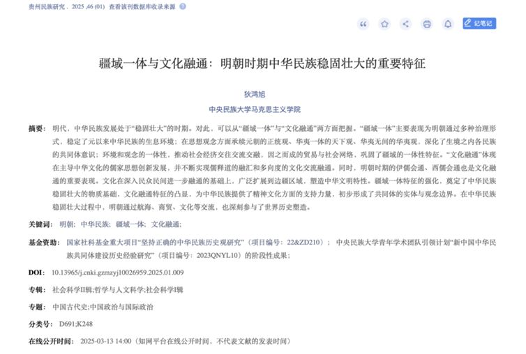 近日,我院多名教师在《马克思主义研究》《教学与研究》《贵州民族研究》《民族学刊》《中国民族报》等刊物上发表了一系列高水平文章,展示了我院教师在科研方面取得的最新进展,彰显了学院在科研工作中的显著成效。宫玉涛教授撰写的《共产国际反法西斯斗争策略及中共抗日民族统一战线政策的形成》在《马克思主义研究》公开发表;王晓红副教授撰写的《马克思的“共同体”与“集体力”内在关系思想探析》在《教学与研究》公开发表;平维彬副教授撰写的《“五相机制”:文明视野下中华民族共同体形成发展的内在规律——基于多元一体格局理论》,刘然副教授撰写的《特色·创新·交融:民族地区乡村振兴的文化路径》和狄鸿旭副教授撰写的《疆域一体与文化融通:明朝时期中华民族稳固壮大的重要特征》在《贵州民族研究》公开发表;陈延斌副教授撰写的《铸牢中华民族共同体意识的理论与实践面向——基于林西县新林镇的调查》《“阿祖阿公之源源相传”——云南各地的武侯崇拜》分别在《民族学刊》《中国民族报》公开发表。