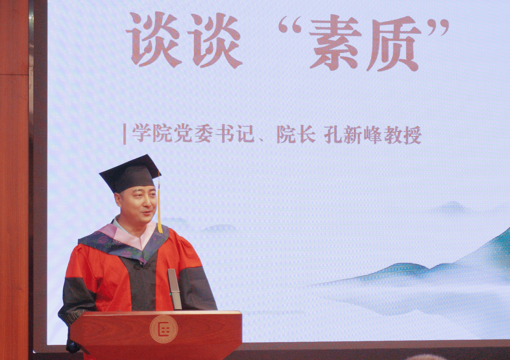 刚才,晓红老师作为导师代表、成鹏同学作为优秀毕业生代表,分别作了精彩发言。他们旁征博引马克思主义经典著作,鞭辟入里、发人深省;而我将从“第二个结合”的角度,侧重阐释中华优秀传统文化,特别是儒家思想的某些精髓要义,与大家探讨“素质”这一命题。谈及 “素质”,我联想到以“素”开篇的《素年锦时》:你们正处“素年”,是人生最纯粹美好的年华;恰逢“锦时”,青春无限、花团锦簇。我想跟大家分享的是,学院与院友都应对作为育人重要目标之一的“素质”进行思考:究竟何为“素质”?