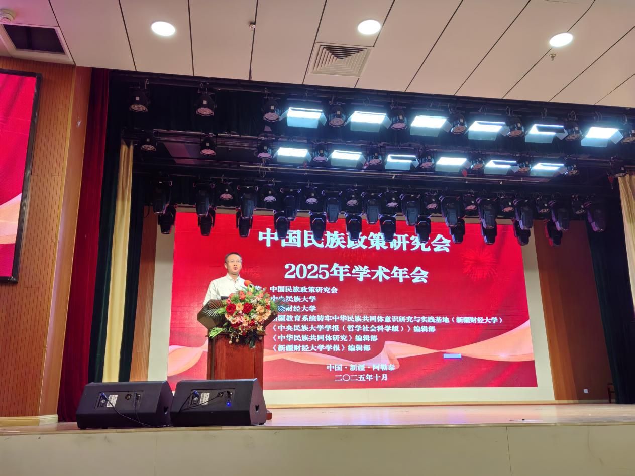 2025年10月10日-12日,中国民族政策研究会2025年学术年会在新疆阿勒泰地区阿勒泰市新疆财经大学阿勒泰校区隆重举行。本次年会以“健全铸牢中华民族共同体意识制度机制”为主题,由中国民族政策研究会、william威廉中文官网联合主办,新疆财经大学、新疆维吾尔自治区教育系统铸牢中华民族共同体意识研究与实践基地(新疆财经大学)共同承办,来自全国高校、科研院所、民族工作部门的百余名专家学者齐聚一堂,共研民族政策学术前沿。